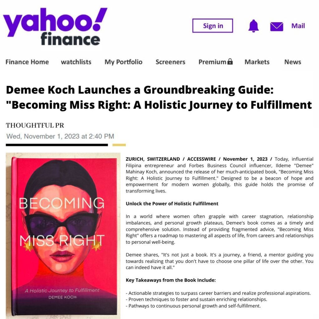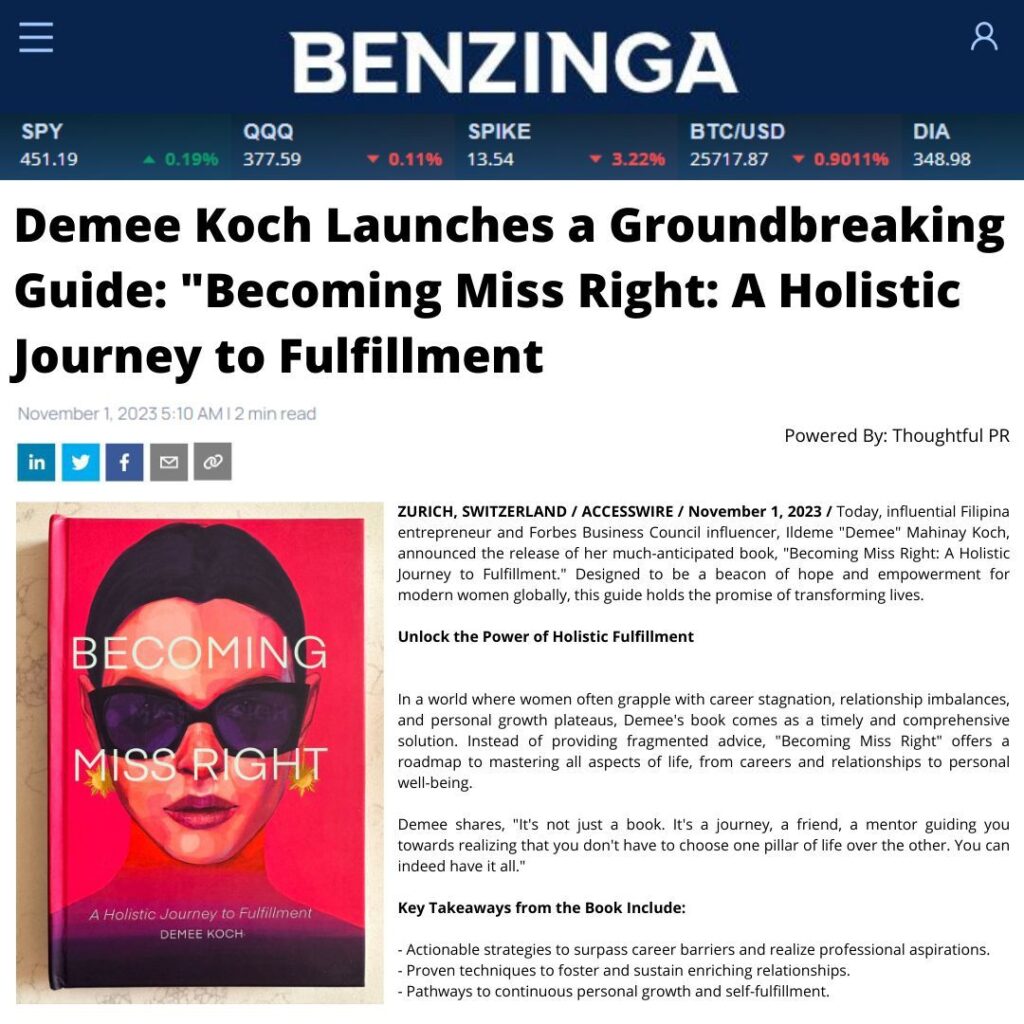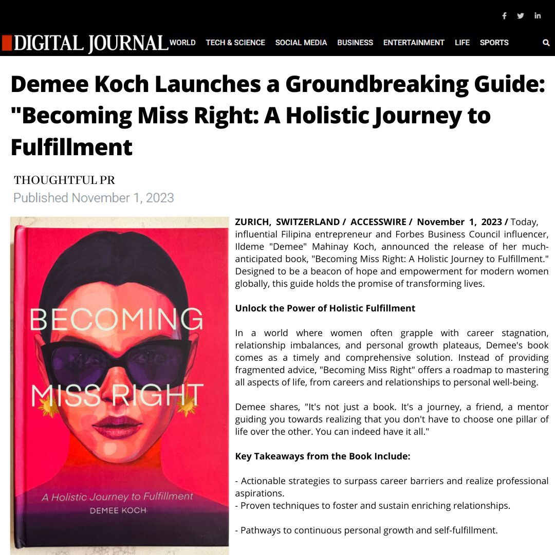 HomeMedia News & Media Demee Koch Launches a Groundbreaking Guide: “Becoming Miss Right: A Holistic Journey to Fulfillment © 2023 All Rights Reserved.